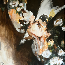 Using layered imagery and bold visual language, she explores themes such as vulnerability, loss, growth, and renewal. Her work balances beauty and tension, creating pieces that encourage quiet reflection and personal connection.